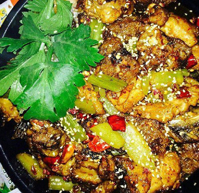 2.鍋中油7成熱(rè),放(fàng)入花(huā)椒大(dà)料,₩σ>然後再将蔥,姜放(fàng)入油鍋內(n¶÷$↕èi)爆香後放(fàng)入魚塊以及幹鍋魚調料翻炒!
